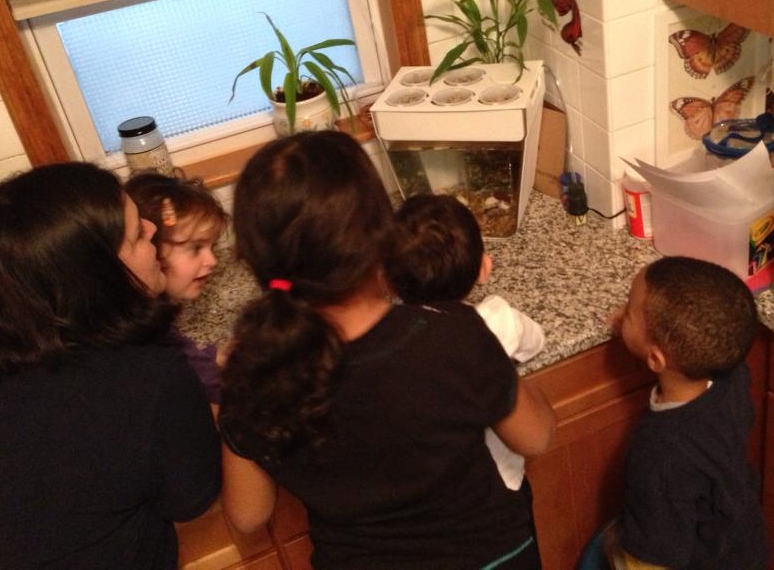 Children observing a aquatic ecosystem & learning to care for living creatures